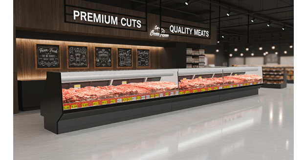 The Q3‑MX‑HV‑R (Meat) and Q3‑FX‑HV‑R (Fish) merchandisers are high‑volume, remote service cases designed specifically for meat and fish applications. Built for durability, visibility, and leak prevention, these cases deliver excellent product presentation with easy‑access rear doors, flexible merchandising configurations, and robust construction engineered for heavy loads.